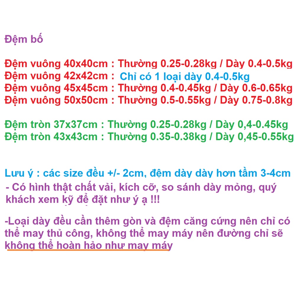 KÍCH THƯƠC :Vuông thường :40x40cm ( +/- 2cm )