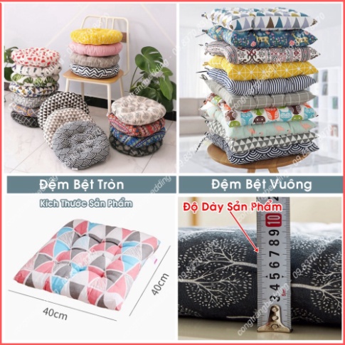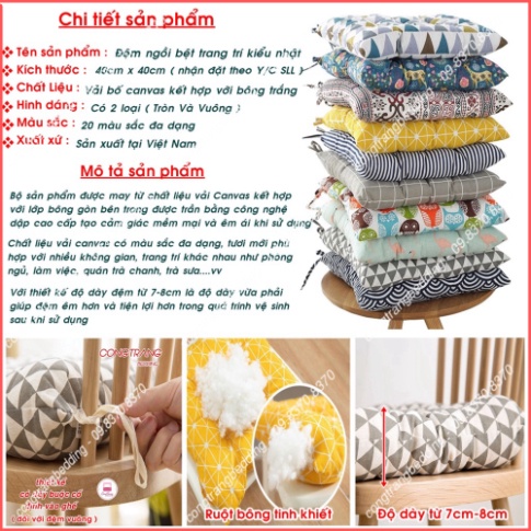 Shop kính chào quý khách hàng. Vui lòng đọc kỹ thông tin sản phẩmTÊN SẢN PHẨM : Đệm Ngồi Bệt Kiểu Nhật, đệm lót ghế Vuông Và Tròn Sang Trọng - Thêu Vi Tính Size 40cm x 40cm, bông trắng cực êm