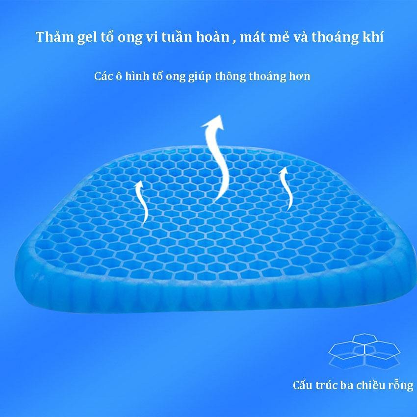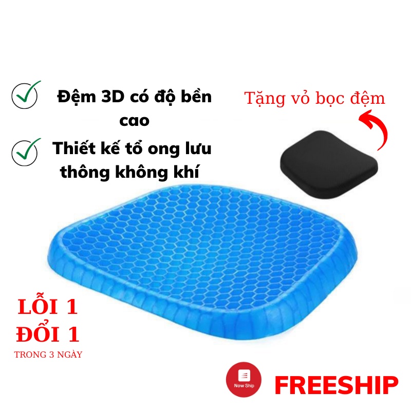 - Đệm ngồi thông minh 3D được làm từ GEL SILICON mát lạnh, cấu trúc tổ ong giúp thóng khí, chống trĩ và bảo vệ cột sống, chống thoát vị đĩa đệm