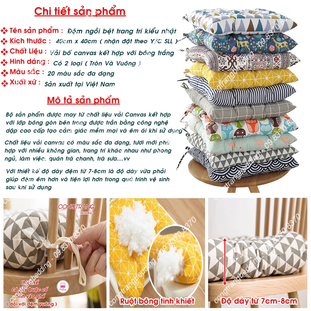 TÊN SẢN PHẨM : Đệm Ngồi Bệt Kiểu Nhật, đệm lót ghế Vuông Và Tròn Sang Trọng - Thêu Vi Tính Size 40cm x 40cm, bông trắng cực êm💥💥 Đệm ngồi bệt, đệm lót ghế t
