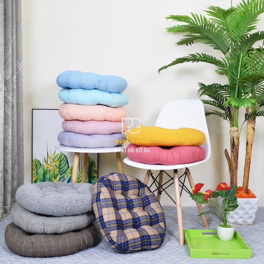 Giới thiệu Đệm ngồi bệt tròn vuông nệm ngồi bệt nệm lót ghế size 45cm đọc sách, cho quán cafe PiGi Home