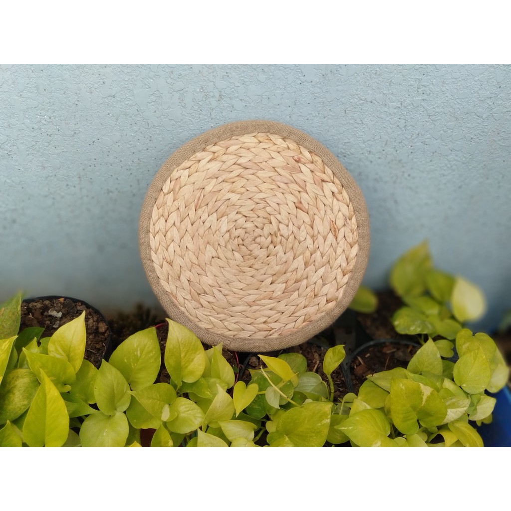 Đệm ngồi đan bằng lục bình đường kính 40cm có độ mỏng vừa phải chỉ từ 2cm, bọc vải bố quanh mép đảm bảo sự sắc xảo cứng cáp cho sản phẩmGiá PBX