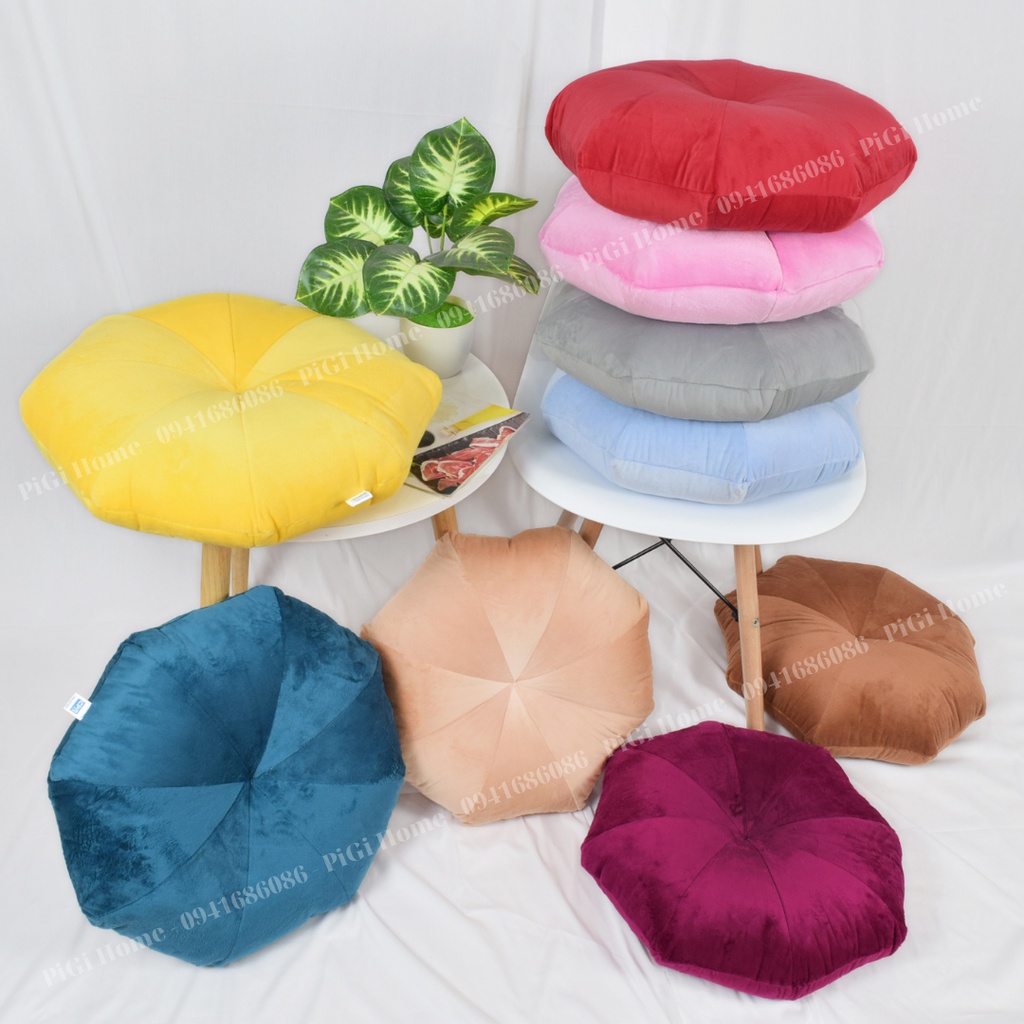 - Sản phẩm đệm gối ngồi bệt, đệm trang trí với thiết kế hình quả bí, màu sắc đa dạng phù hợp nhiều phong cách vừa trẻ trung cá tính mà vẫn hiện đại, đơn giản, thích hợp làm đệm ngồi bệt, đệm thiền, dùng làm gối trang trí phòng khách, phòng ngủ, ghế sofa,... Chất liệu vỏ gối tựa lưng bằng nhung cao cấp, và lõi bông PP chống xẹp, giúp đệm, gối tựa lưng trang trí luôn giữ được Form dáng. Đặ biệt vải nhung mềm mại và an toàn cho da người sử dụng.