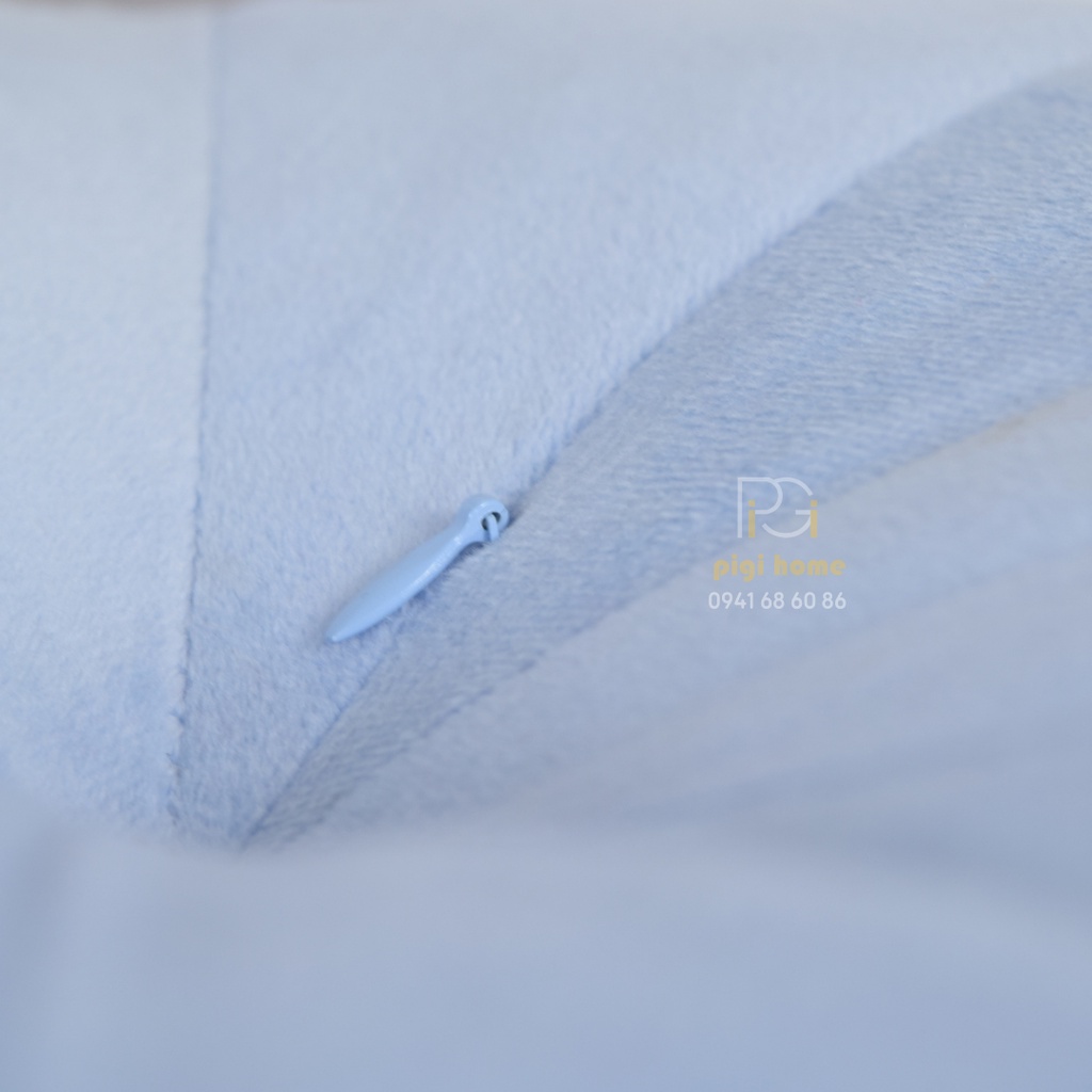 - Chất liệu: Vỏ nhung có khóa kéo, lõi bông hạt gạo cao cấp (Tháo vỏ giặt thoải mái)