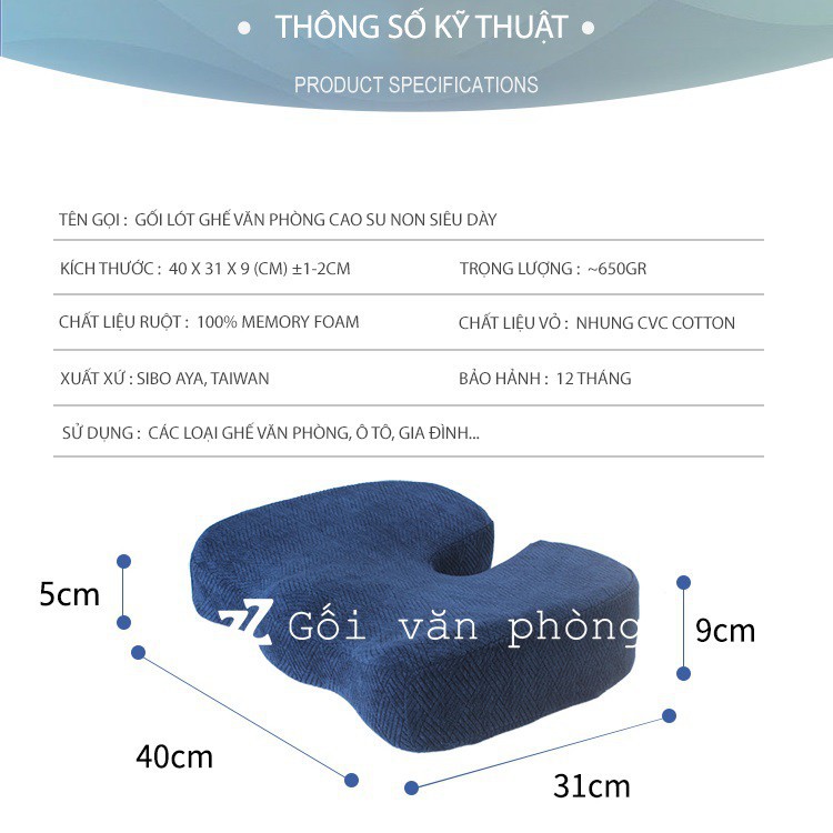 Sản phẩm có kích thước nhỏ gọn và độ dày lớn nên cực êm và thoải mái, được hầu hết các khách hàng nữ đánh giá rất tốt vì vỏ nhung CVC chất lượng cao không gây cộm ngứa khi ngồi. Đây là sản phẩm cao cấp chỉ sau gối cao su thiên nhiên mã GLM08 của thương hiệu ZURI PILLOW.