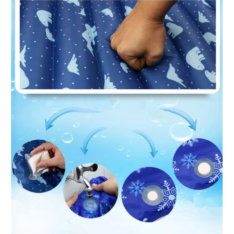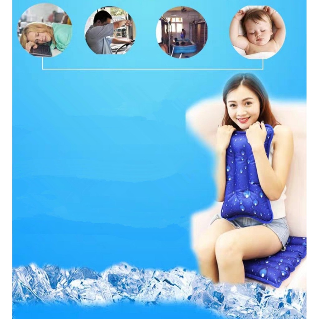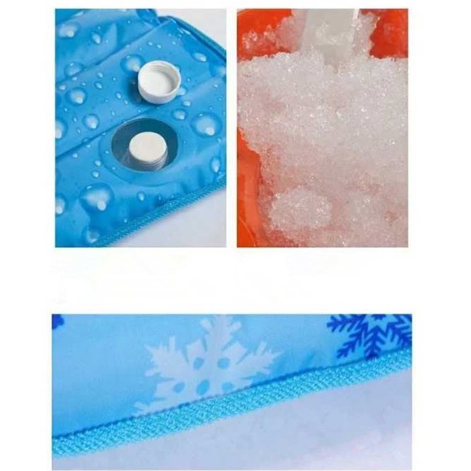 Vỏ bọc bên ngoài bằng vải chống thấm, bên trong chứa dung dịch làm mát có khả năng giữ lạnh cao, tạo cảm giác mát lạnh, dễ chịu.