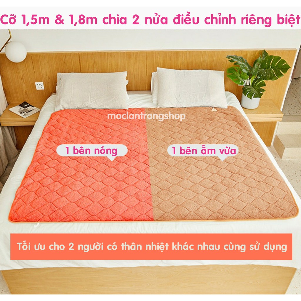 💖 Đặc biệt với loại to 1m5 và 1m8, lò xo làm nóng được chia thành 2 nửa tương ứng với 2 người nằm. Bạn có thể điều khiển từng nửa riêng biệt cho phù hợp với mỗi người. Không còn tình trạng người thì thấy nóng, người vẫn thấy chưa đủ ấm 🥰