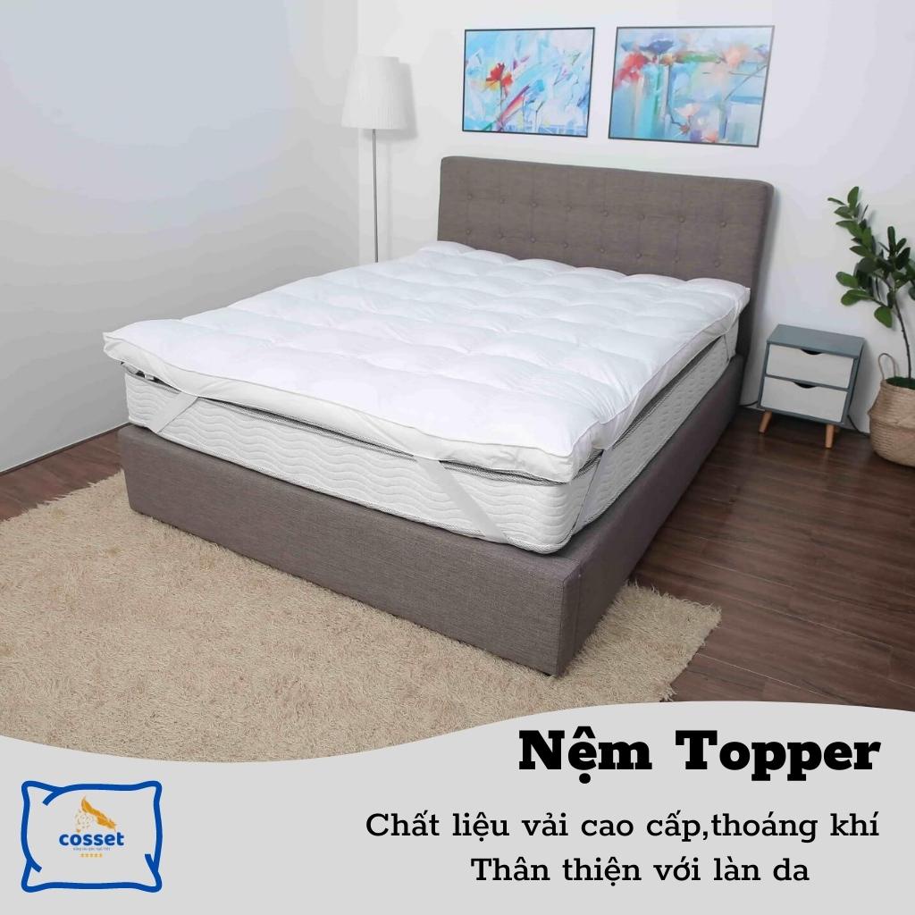 Đệm topper 10cm Cosset - Tấm làm mềm nệm topper êm ái chuyên trang bị cho khách sạn 4 - 5 Sao,tặng kèm 1 đôi gối