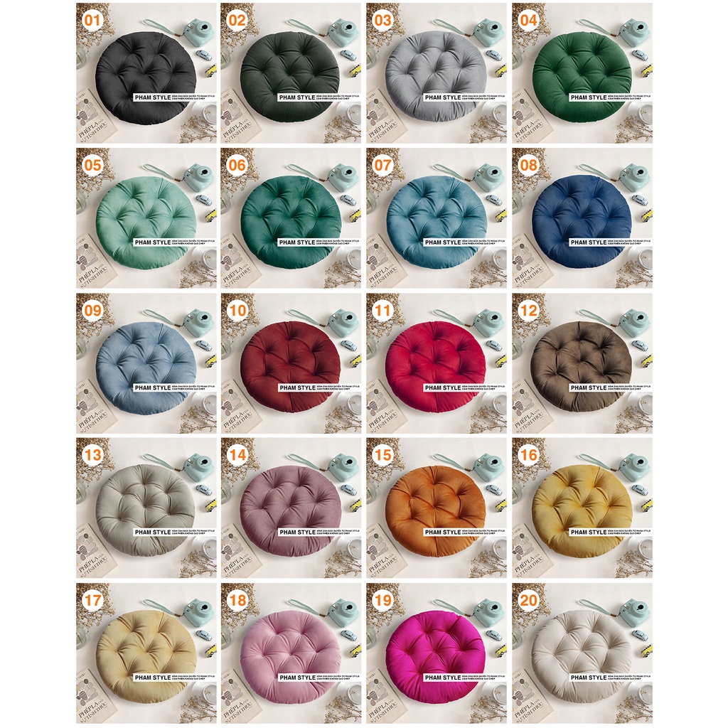 Giới thiệu Đệm Tròn Ngồi Bệt Vải NHUNG (No1-20) (40,45,50cm)