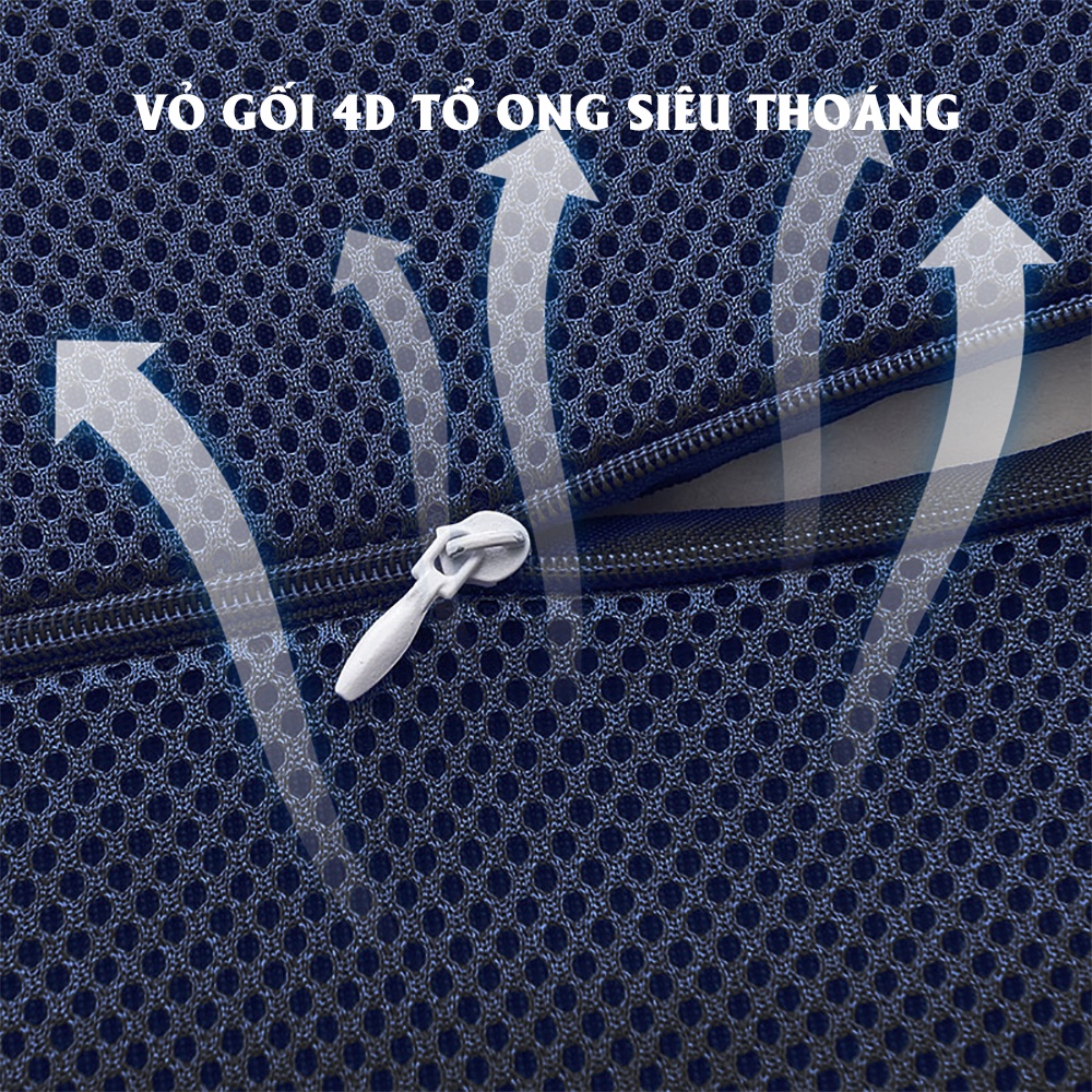 Vỏ gối: Vải lưới 3D sang trọng, thấm hút mồ hôi, thoáng mát mùa hè, tạo cảm giác Massage. Ngoài ra, vỏ gối có khóa kéo tiện lợi, giúp việc vệ sinh gối dễ dàng hơn.