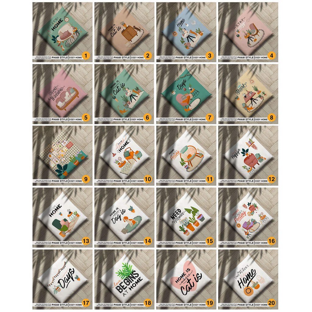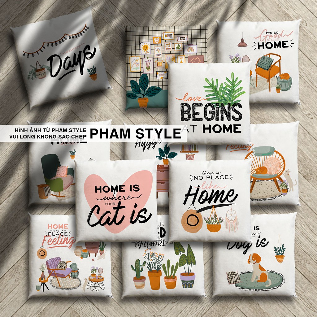 ❤️Pham Style xin giới thiệu bộ sưu tập Đệm ngồi trang trí COZY HOME (45cm) , mang phong cách tươi tắn , màu sắc làm cho ngôi nhà trở nên mát mẻ . Với chất liệu vỏ vải bố in hình 1 mặt , ruột đệm bông gòn trắng , có thể tháo vỏ ra giặt