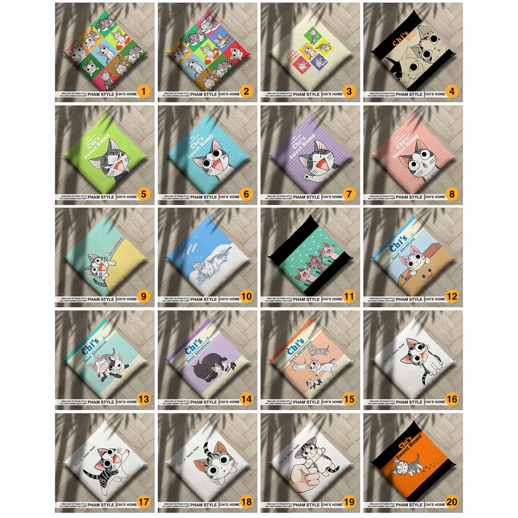 ĐỆM VUÔNG NGỒI BỆT MÈO CHI (No1-20) (45cm) CÓ THẾ THÁO VỎ RA GIẶT