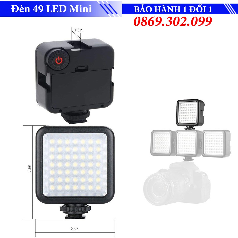 Đèn led mini W49 Sử dụng cho điện thoại, máy ảnh, máy quay phim- Được đánh giá là 1 trong 3 mẫu đèn led chuyên dụng để chụp hình, quay phim trên smartphone, máy tính bảng, máy ảnh hoặc máy quay phim, W49 Led Video Light có tuổi thọ lên tới 50.000 giờ sử dụng- Sử dụng nguồn sáng cơ bản từ 49 bóng led siêu nhỏ, cho ánh sáng đều và mạnh.