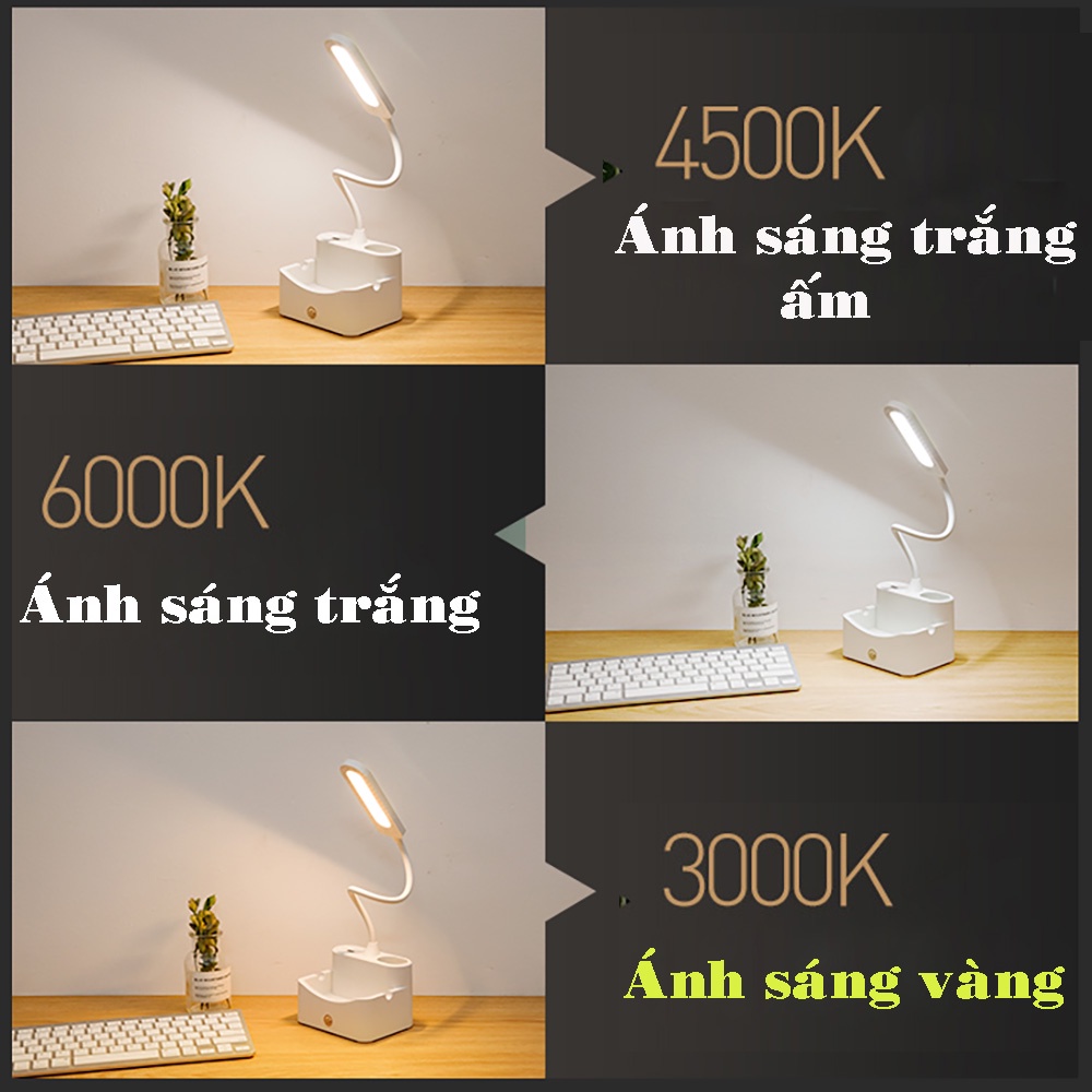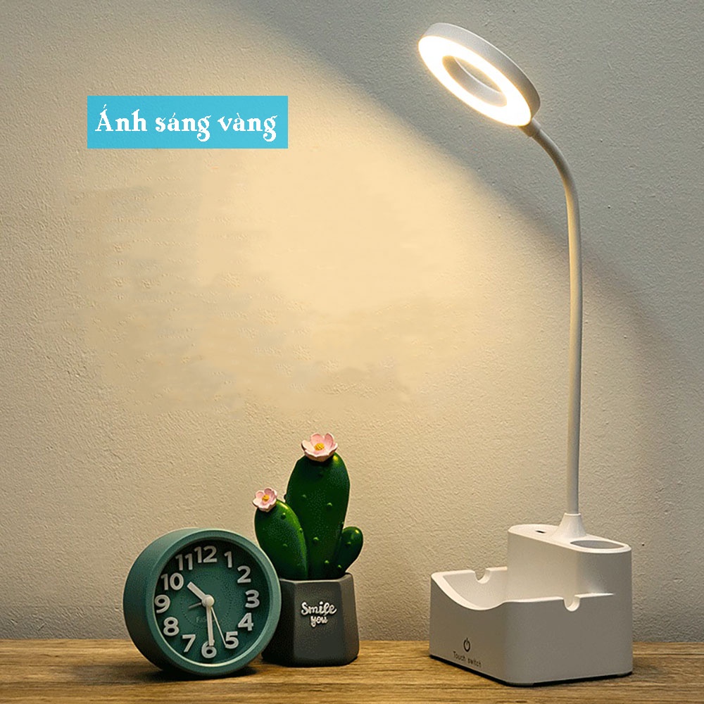 Đèn Bàn Học Ánh Sáng Vàng Trắng Pin Sạc Điều Chỉnh Được Độ Sáng