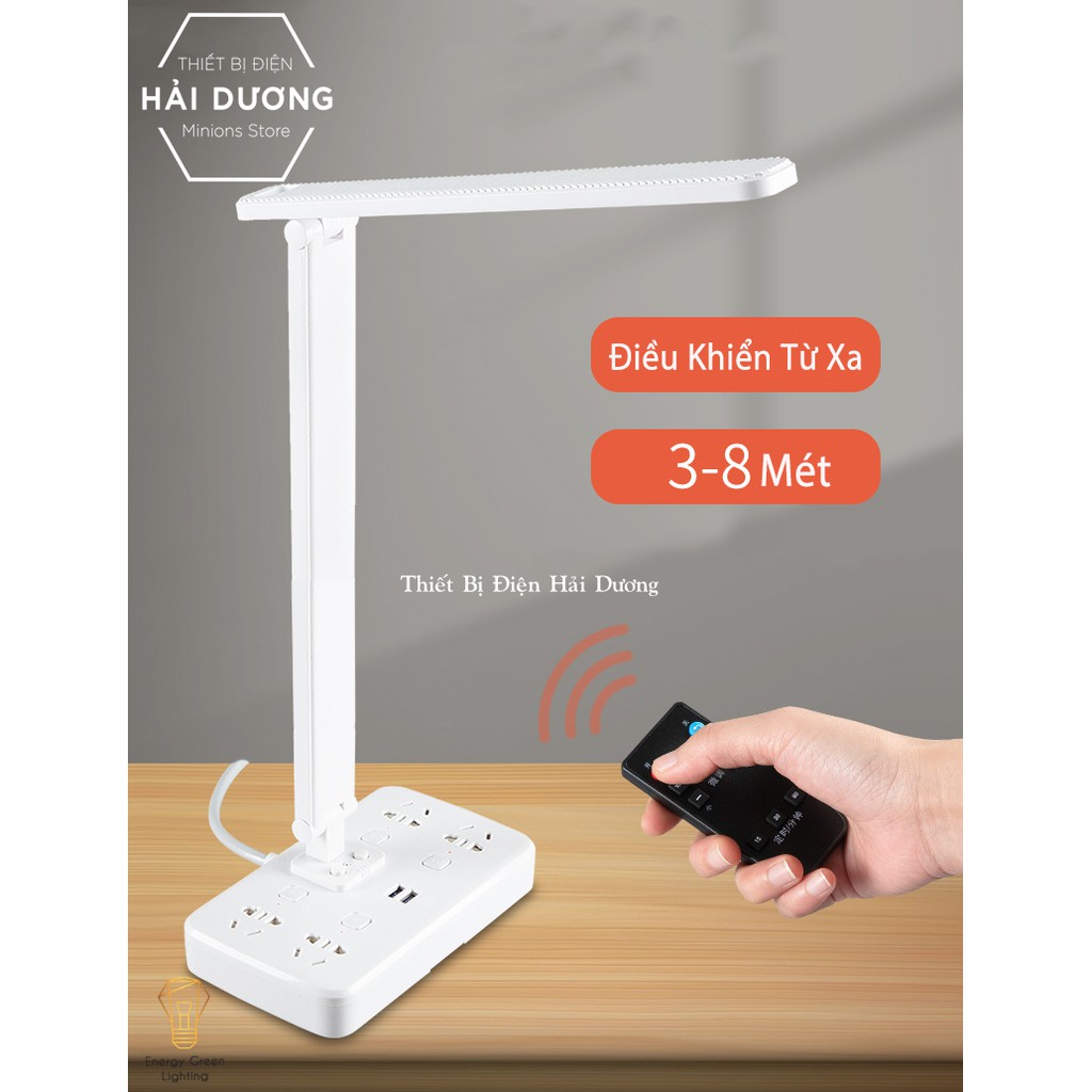 Đèn Bàn Led Có Thể Gấp Gọn DB-3018 - Điều Khiển Từ Xa - Tích Hợp Ổ Cắm Điện, USB - Tặng Kèm 1 Phích Chuyển Đổi 3 Chân