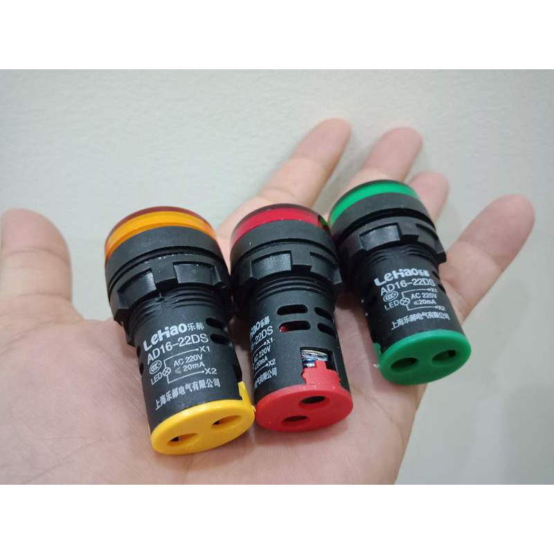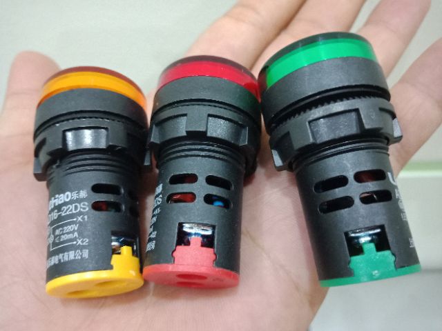 Đèn báo pha, báo nguồn phi 22mm 220 Volt - Màu XANH, Màu ĐỎ, Màu VÀNG