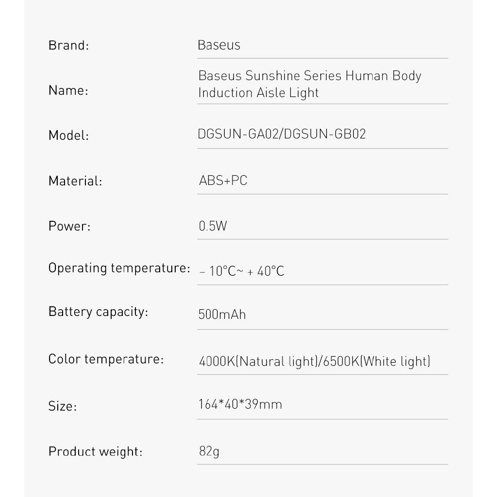 ☑️ Đèn cảm ứng chuyển động thông minh Baseus Sunshine Series - AISLE Edition (500mAh, Human body Induction/ PIR Intelligent Motion Sensor LED Nightlight).