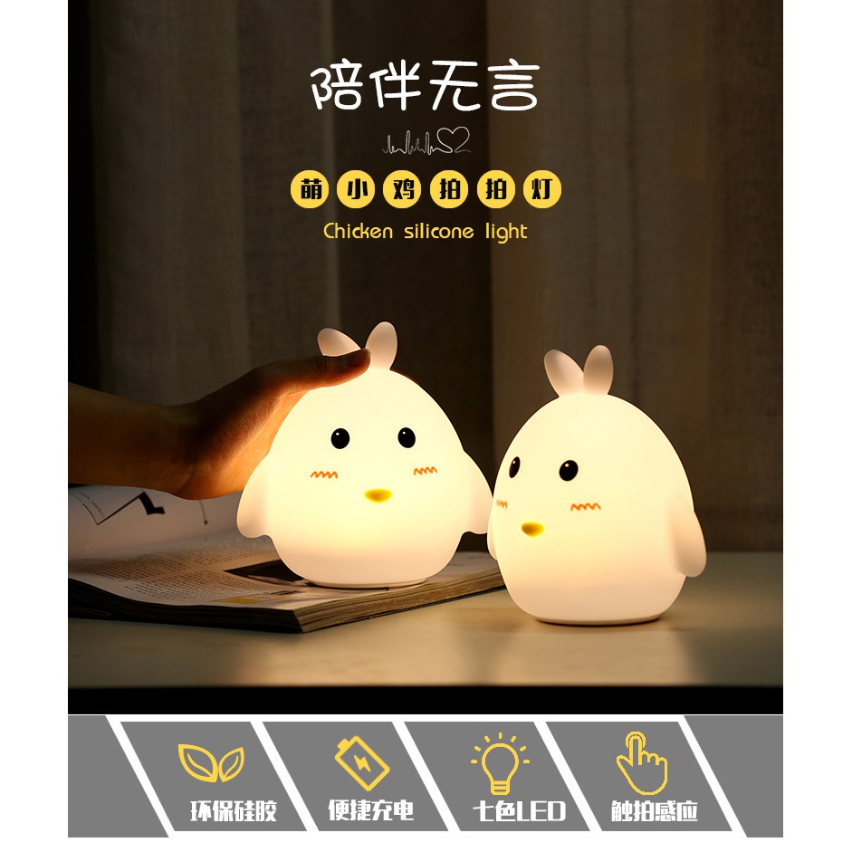 Đèn cảm ứng chuyển màu Silicone Gà con - Pin & Sạc USB