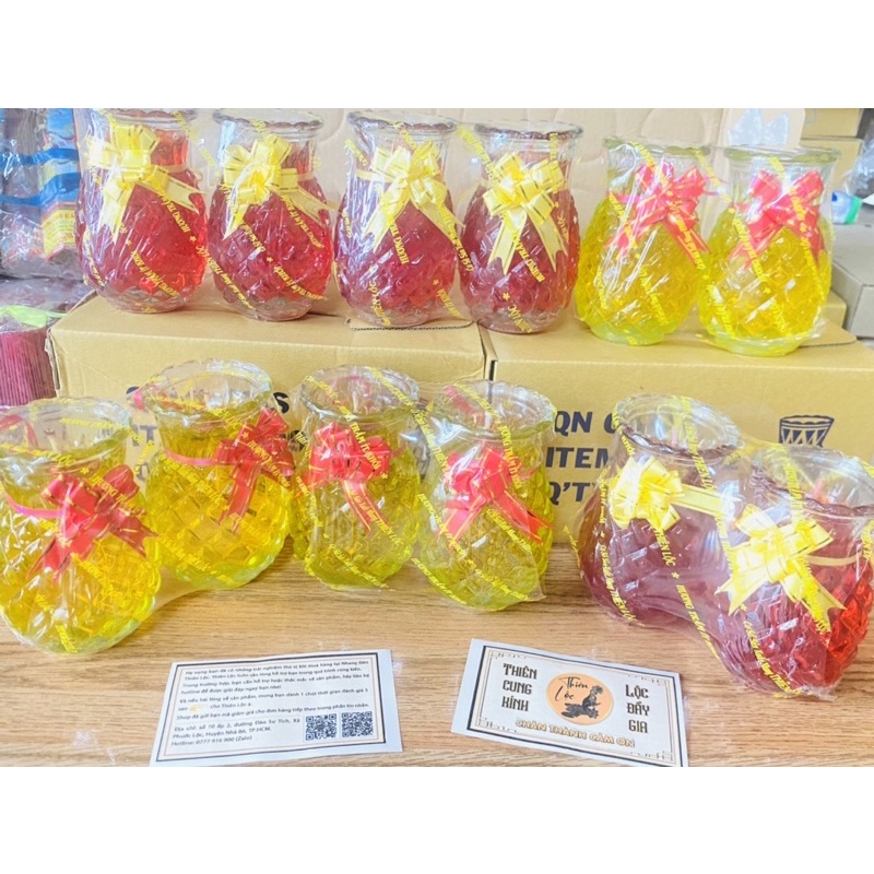 Đèn Cầy Ly Hình Trái Thơm Đỏ/Vàng Loại Trung [Hộp 3 Cặp 6 Ly/1 Ly Hơn 2 Ngày] - Thiên Lộc