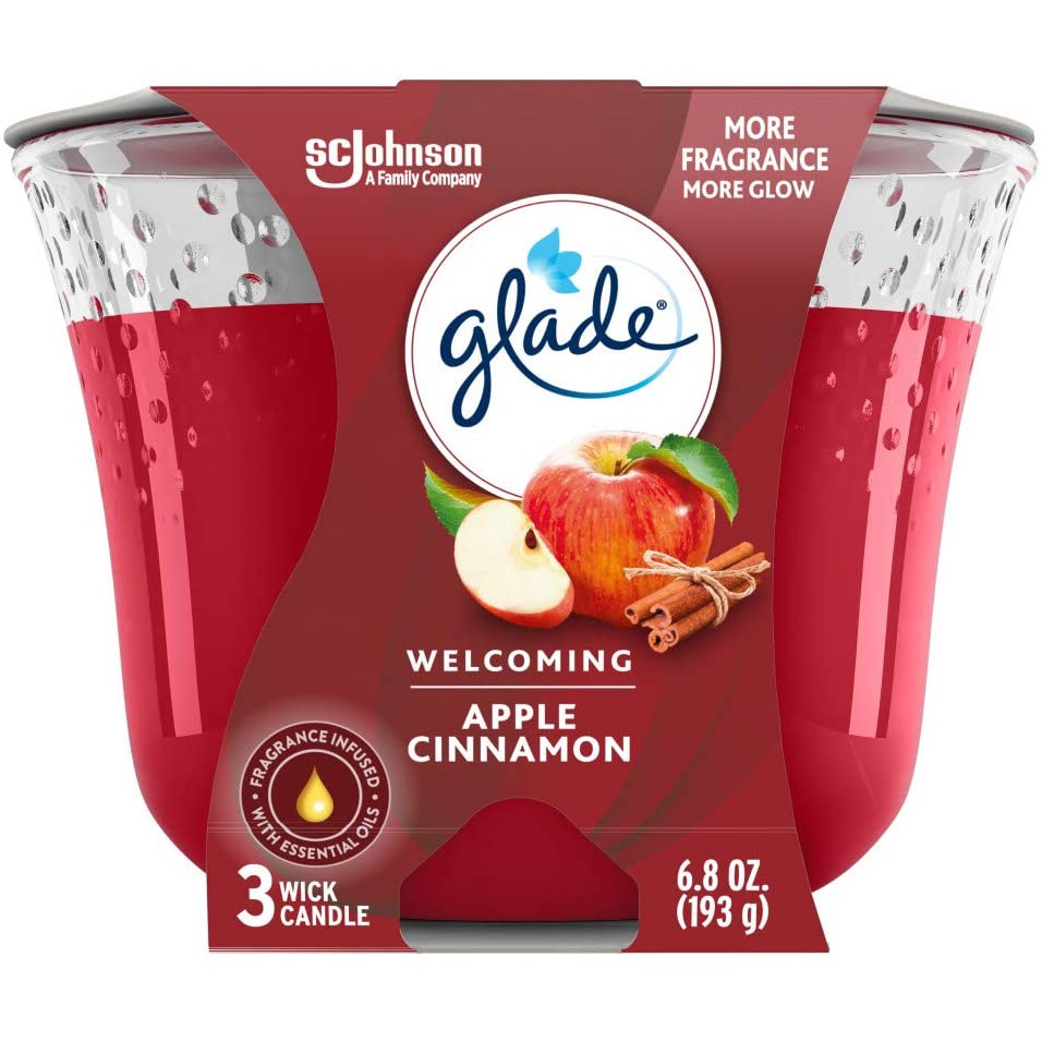 Nhà cửa & Đời sống > Trang trí nhà cửa > Nến & đồ đựng nến || Đèn cầy nến thơm 3 bấc Glade 3-wick Candle Jar Air Freshener Apple Cinnamon 193g (Mỹ)Còn hàng