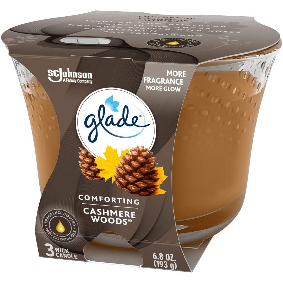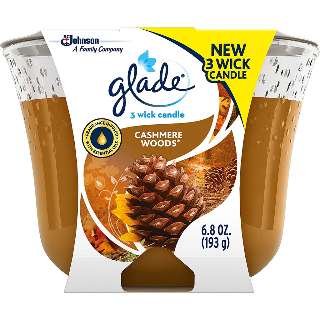 Đèn cầy nến thơm 3 bấc hương gỗ Glade Cashmere Woods Air Fresher 3-Wick Candle 193g (Mỹ)