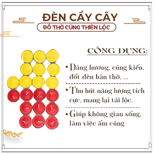CÔNG DỤNG SẢN PHẨM Đèn Cầy Tea Light Đế Thiếc Cháy Lâu Đồ Thờ Cúng Thiên Lộc - Hộp 100 Viên Thiếc: