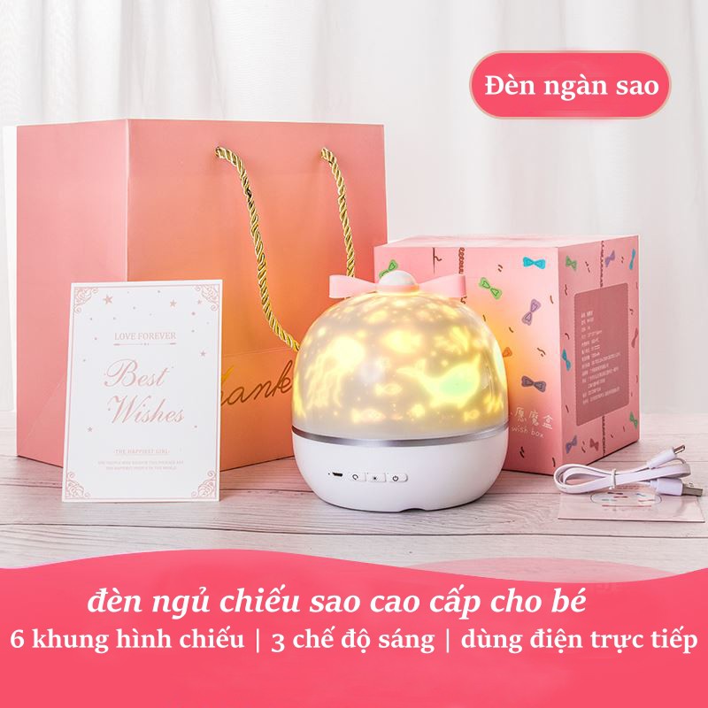Đèn LED chiếu ngàn sao 3D cho bé tự xoay, hình đại dương, cổ tích, ngân hà cực đẹpĐem cả vũ trụ đến với căn phòng của bạn, vừa có thể làm đèn ngủ vừa có thế làm đèn chiếu hình lãng mạn, với 3 màu hoac 6 màu đèn có thể điều chỉnh độ sáng và chế độ xoay khiến bạn như ở giữa bầu trời ngàn sao, giữa đại dương mênh mông hay giải ngân hàng kì bí. Đèn ngủ chiếu sao rất thích hợp đặt trong phòng trẻ nhỏ giúp kích thích sự tò mò tìm hiểu và sáng tạo của trẻ. Hoặc cũng có thể là một món quà đầy thú vị dành cho bạn bè và những người thân yêu của bạn.