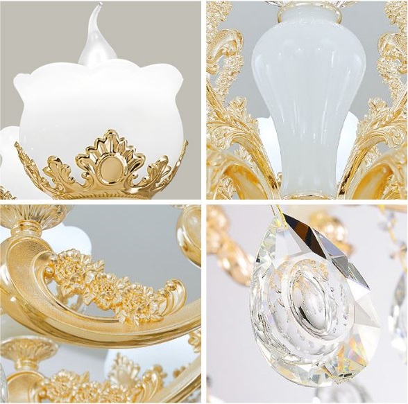 Như các mẫu đèn chùm cổ điển, đèn có cấu tạo chi tiết và phức tạp. Đèn sử dụng chất liệu mạ vàng cao cấp, thu hút và bắt mắt bạn ngay từ lần đầu tiên nhìn thấy. Đèn bao gồm tấm ốp trần, dây xích treo cố định, chao đèn lớn và hệ thống tay đỡ đèn được sử dụng công nghệ đèn hiện đại giúp tuổi thọ bóng cao. Chụp nến pha lê trong suốt cao cấp giúp ánh sáng tỏa ra mạnh mẽ mà không chói lóa. Tất cả tạo nên một sản phẩm quyến rũ, quý phái, mang hơi thở tinh tế, trang nhã cho không gian phòng bạn.