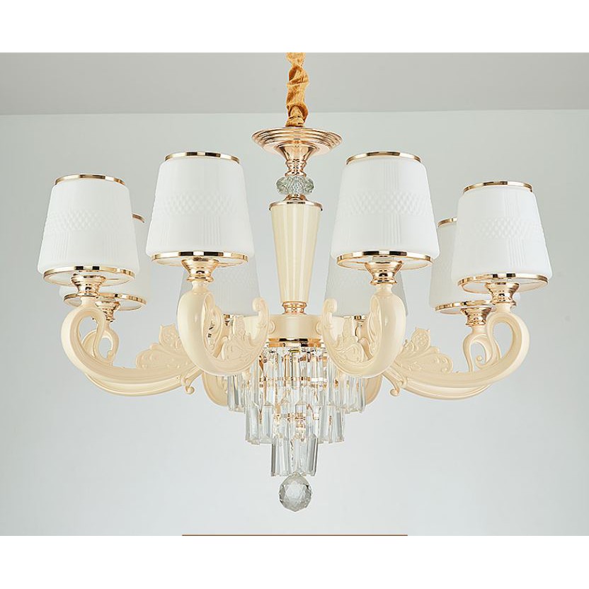 Giới thiệu Đèn chùm pha lê MONSKY ROYAL WHITE tạo điểm nhấn đặc biệt cho không gian thêm sang trọng loại 8 tay cao cấp