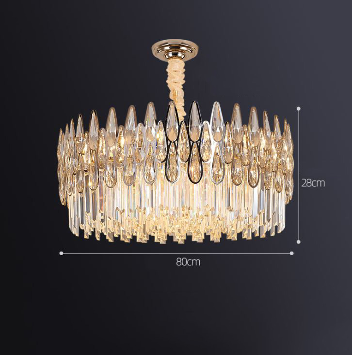 Thân đèn là những giọt lệ pha lê được sắp xếp đan xen một cách có chủ ý mang đến sự sang trọng, quý phái mà không phải loại đèn nào cũng có.