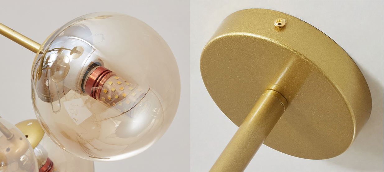 - Chao đèn thủy tinh hổ phách có độ truyền sáng cao, ánh sáng đồng đều, hiệu ứng ánh sáng dịu nhẹ, dễ dàng vệ sinh.