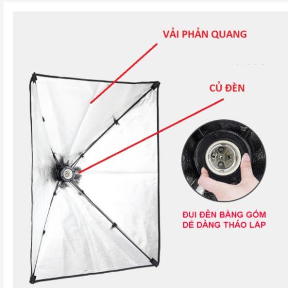 Đèn Chụp Ảnh Sản Phẩm, Bộ Đèn Studio, quay phim, Livestream chuyên nghiệp, chân đèn cao 2m kèm Softbox 50x70cm