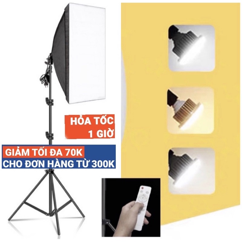 Bộ đèn studio chụp ảnh, quay phim, Livestream chuyên nghiệp, cao 2m softbox 50x70cm