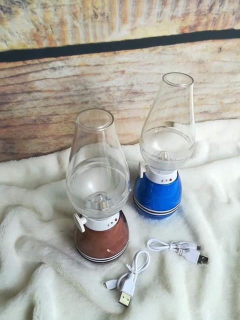 Đèn có hình dáng như một chiếc đèn dầu truyền thống, có chất liệu là nhựa ABS, dùng điện áp 5V - sạc qua cổng USB hay sạc ĐT đều đc - để thắp sáng bóng đèn.