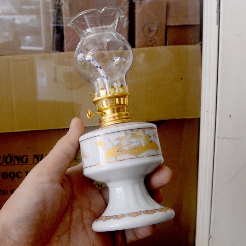 Giới thiệu đèn dầu sứ trắng sen vàng cao 16cm