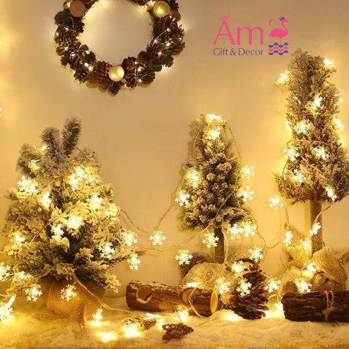 Dây đèn trang trí nhiều hình dạng: bông tuyết, ngôi sao, đèn noel,vv