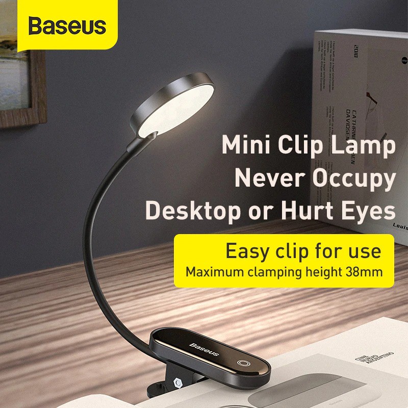 - Baseus Comfort Reading Mini Clip Lamp là một đèn chuyên dụng dùng cho đọc sách buổi tối. Sản phẩm được thiết kế dạng kẹp với kích thước vô cùng nhỏ gọn có thể mang theo sử dụng mọi nơi . Độ sáng vừa phải, tần số quét cao, chống rung, chống chói và gây mõi mắt .Tính năng cơ bản Đèn đọc sách mini, pin sạc tiện dụng Baseus Comfort Reading Mini Clip Lamp