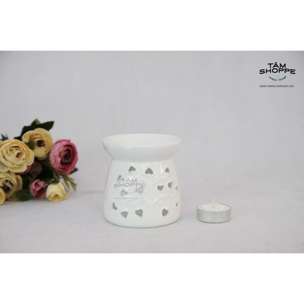 ĐÈN ĐỐT NẾN TINH DẦU GỐM TRẮNG HỌA TIẾT TIM SỐ 04