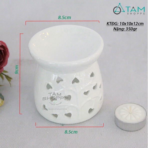 Giới thiệu ĐÈN ĐỐT NẾN TINH DẦU GỐM TRẮNG HỌA TIẾT TIM SỐ 04