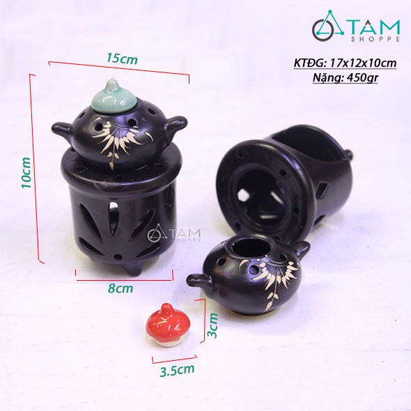 Ðèn đốt nến tinh dầu hình ấm trà- Màu sắc: Đen