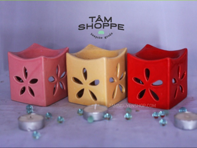 Đèn đốt nến tinh dầu vuông hoa thị