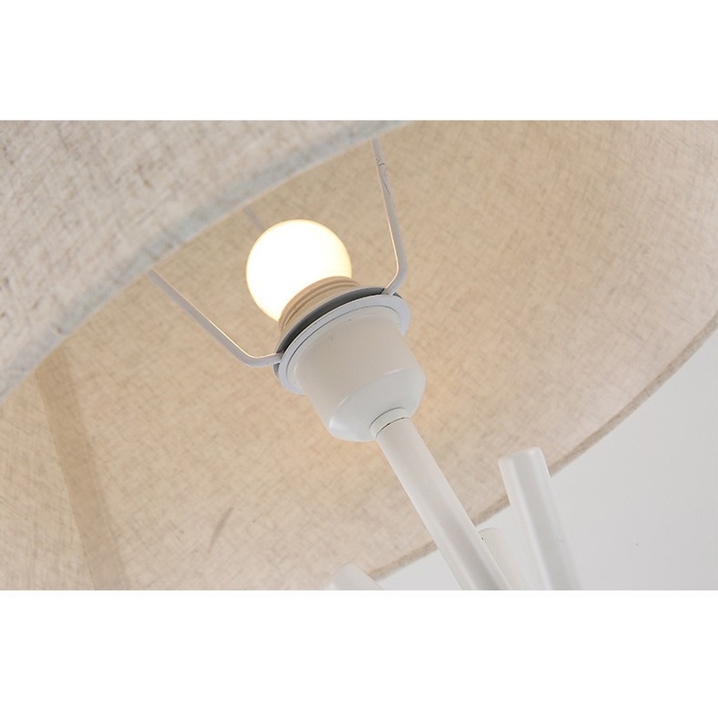 Chụp đèn làm bằng vải bố, độ bền cao, tản nhiệt tản sáng tốt, khi bật đèn, màu sắc sẽ ngả sang tone trầm ấm.