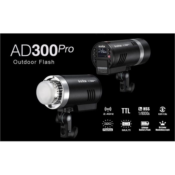 Đèn flash Godox AD300 Pro là dòng sản phẩm mới của hãng Godox, đèn có kích thước nhỏ gọn, trọng lượng nhẹ tiện lợi và dễ dàng cho việc di chuyển trong công việc. AD300 Pro được thiết kế tích hợp nhiều tính năng TTL, M, Multi, có thể sử dụng cho đa dạng dòng máy Canon, Nikon, Sony, Fujifilm, Olympus, Panasonic. Godox AD300 Pro khi sử dụng đèn mô hình LED để tiêu hao pin thấp nhưng đèn này có thể thay đổi từ 3000 đến 6000K trong 10 bước, khiến nó rất phù hợp cho việc quay chụp.