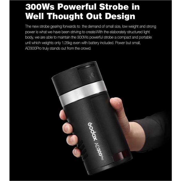 AD300 Pro tự hào có tất cả các tính năng độc đáo của dòng sản phẩm Godox Wistro AD, đồng thời cung cấp công suất mạnh 300W và duy trì, thiết kế nhỏ gọn di động của nó. Với đầu đèn flash tròn, AD300 Pro có thể cung cấp các hiệu ứng ánh sáng mềm và đều ở cấp độ studio.