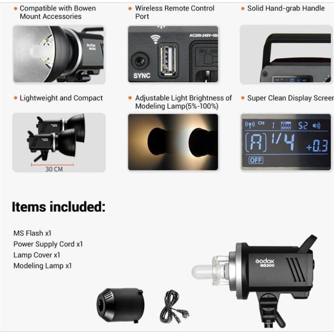 Cameras & Flycam > Phụ kiện máy ảnh > Thiết bị ánh sáng và phòng chụp || [Mã 44ELSALE2 giảm 7% đơn 300K] Đèn Flash studio Godox MS300Còn hàng