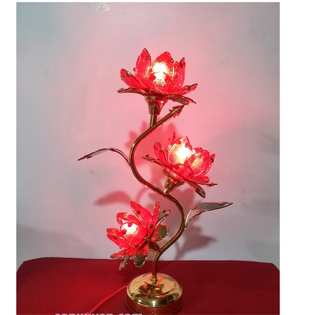 #Denhoasen #denbantho #denhoasen3bong #dentrangtribantho #denhoasentrangtribanthoĐèn hoa sen trang trí bàn thờ được thiết kế hình ảnh 3 bông hoa sen uốn lượn màu đỏ, lá xanh, thân vàng kim.