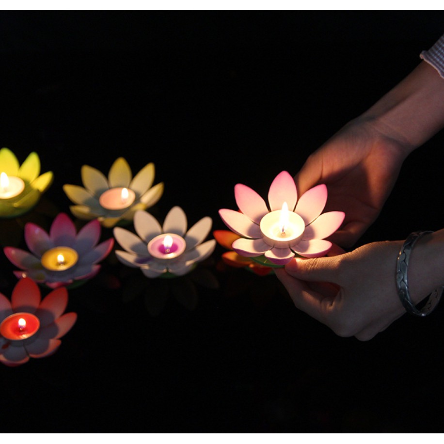 Đèn hoa sen hoa đăng Đèn nến thả nước 8 cánh, hoa trang trí Vu Lan Cúng Rằm Trung thu
