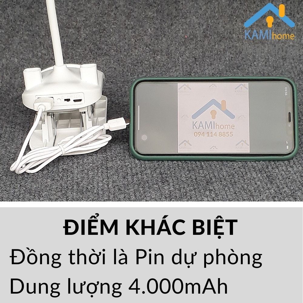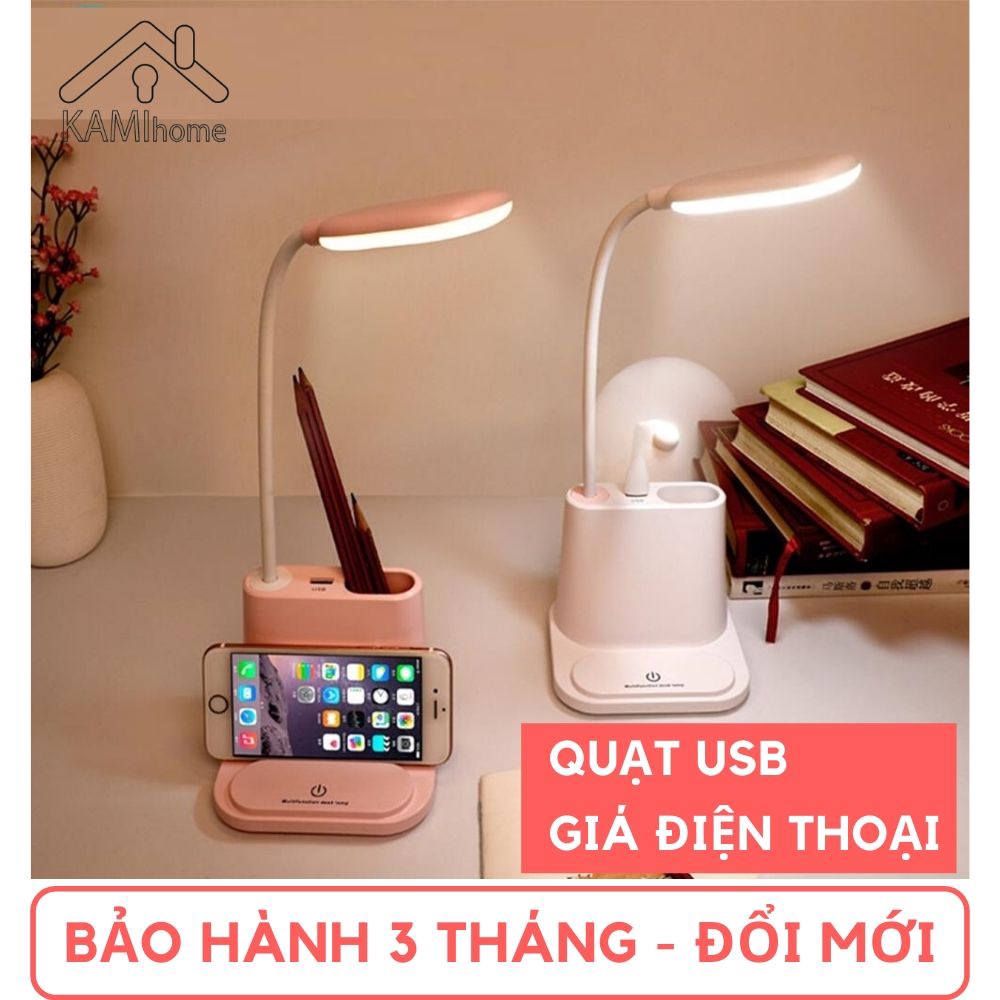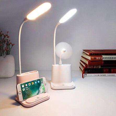Đèn học để bàn sạc tích điện rất tiện lợi : 1) Có thể cắm điện qua cổng USB ở Máy tính-Pin dự phòng-Củ sạc điện thoại nên dễ mang theo người; 2) Chân kẹp đa năng: vừa để bàn vừa có thể kẹp vào cạnh bàn tiện lợi; 3) Có Giá kê điện thoại và Giá để bút tiện lợi cho học sinh và văn phòng.*Chức năng: 1) Đèn học - Đèn đọc sách; 2) Tích hợp Quạt mini cắm cổng USB;