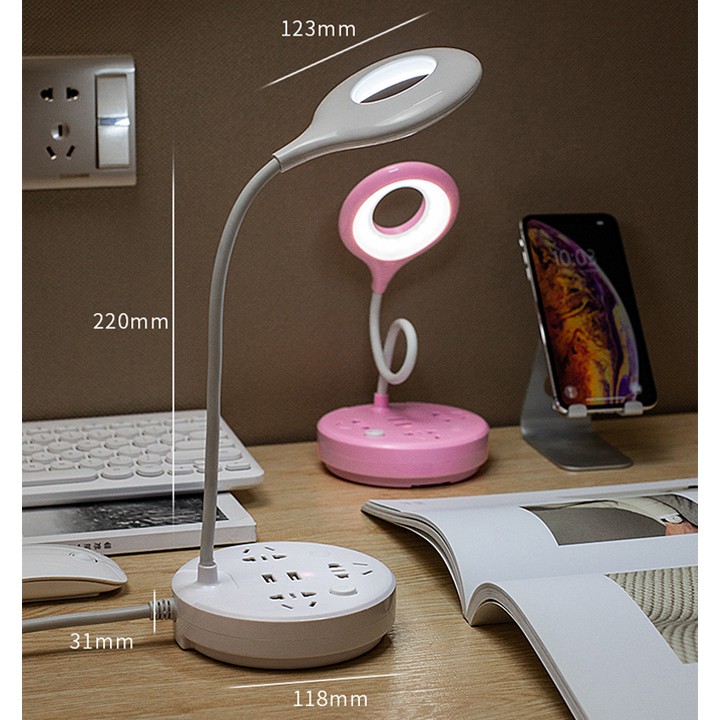 Đèn học làm việc để bàn chống cận thị kết hợp nhiều ổ cắm tích hợp ổ cắm USB sạc điện thoại đèn cây chống lóa mỏi mắt dùng làm đèn ngủ, đèn đọc sách, đèn học, đồng thời Có đủ công năng của 1 ổ cắm chuyên dụng