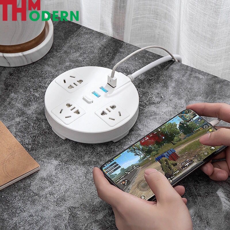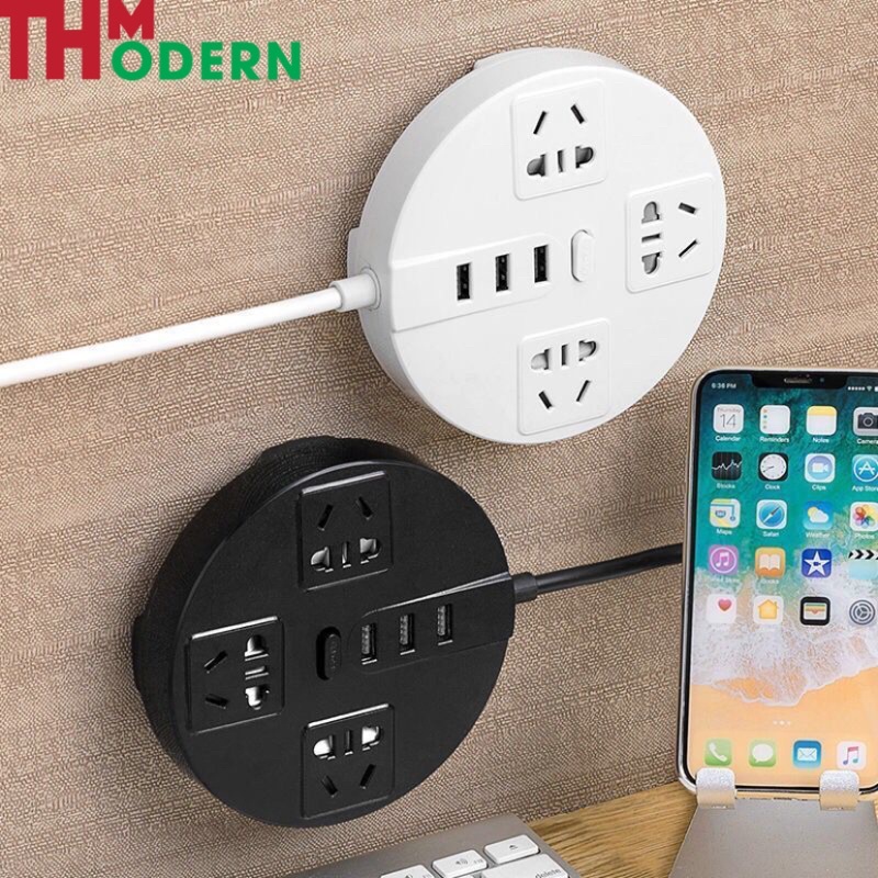- ổ cắm thông minh gồm 3 ổ cắm 2 chân 3 ổ cắm 2 chân, tích hợp công tắc bật tắt an toàn và 3 cổng usb tự động điều chỉnh nguồn phù hợp với mọi thiết bị điện thoại, máy tính bảng ....